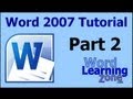 Part 02 of 13. Complete Microsoft Word 2007 Basic Level 1 tutorial from WordLearningZone.com. In this lesson: The Ribbon, Ribbon Tabs, Groups, Buttons, Help Popup Menus for Each Command, Command Buttons, Drop-Down Menus, Command Button Groups, Galleries, Dialog Box Launcher Buttons. For more, visit